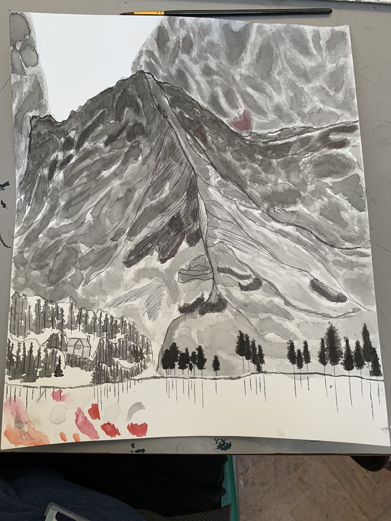 Originaly i started this project with drawings and paintings of landscapes before coming to the conclusion i didnt want to work in colour but that i wanted to work with black and white water colour as oposed to acrilic as it is easier to manipulate and implie tone.